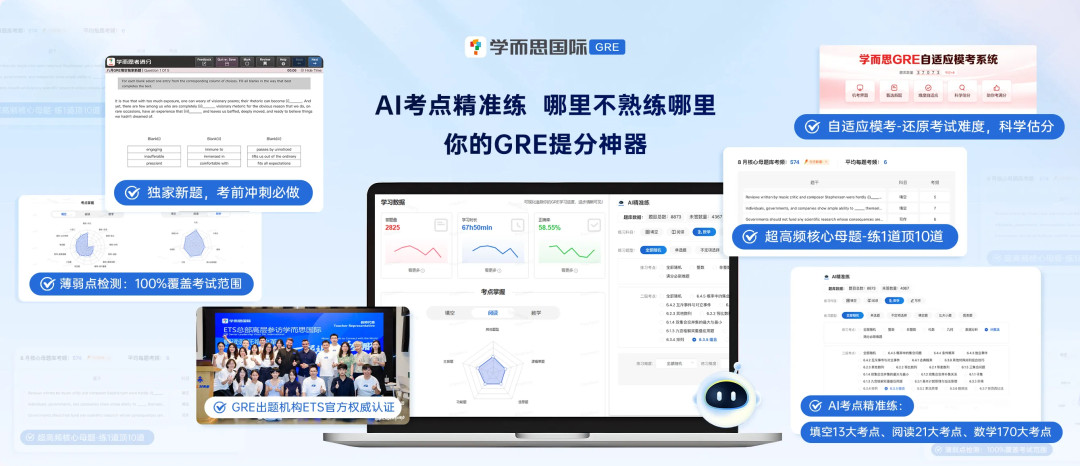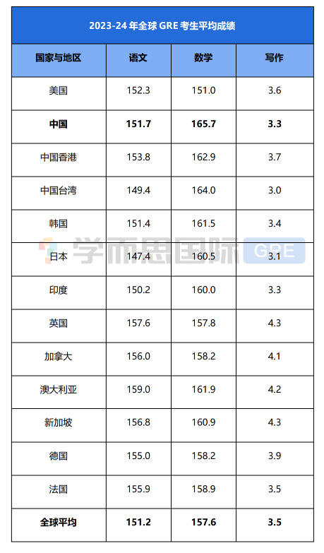 刚刚,ETS官方发布了最新的GRE年度成绩报告(2019年7月—2024年6月)。该报告详细介绍了2023年7月至2024年6月期间全球GRE考生的数量、GRE各科目的平均分数、考生所申请的专业及其对应的平均分数等关键数据。 通过了解这些数据,特别是我们中国考生的表现,相信可以帮助同学们更加清晰地设定自己的目标分数。接下来,就让小思带大家一起解读这份最新的报告吧! 中国GRE考生数量强势反弹 从考生数量来看,中国区GRE需求持续升温!2023-24年度中国区考生人数强势反弹,达到40579人,同比上涨23.2%,首次超越疫情前的39779人(2019-20年度)。 此外,中国考生年轻化趋势明显,年龄段在18-22岁的考生高达72%,在全球所有国家和地区中占比最高。与之对比的是,美国这一数据仅为47%,印度56%。 未来,随着全球顶尖高校陆续恢复对GRE成绩的要求,提交GRE成绩定将显著提升中国申请者的竞争力。 中国GRE考生平均成绩领跑全球 根据这份报告,2023-24年度中国考生的语文、数学、写作成绩分别为151.7、165.7、3.3,而全球GRE平均分为:语文151.2,数学157.6,写作3.5。 作为非英语母语国家,中国考生的GRE语文成绩略高于全球均分持平,GRE数学单科成绩依旧呈现碾压性优势,高出全球均分8.1,写作则略低于均分0.2。 中国GRE考生历年平均分有所下降 对比历年的数据,2023-24考试年度中国GRE考生各科成绩都有所下降—— GRE语文部分,2023-24年度中国考生的平均成绩比上一个统计周期下降了2.1分。 GRE数学部分,中国考生的平均成绩也比上一个统计周期下降了1.5分。 为了帮助同学们更加短平快考出理想的GRE成绩,ETS官方认证学而思国际GRE名师最近紧锣密鼓,通过爬梳3万+道GRE题,独家教研出GRE填空13大考点,阅读21大考点、数学170大考点,100%覆盖考试范围,确保知识无死角。 ????????左右滑动查看GRE各科考点 申请不同专业全球GRE考生成绩 从不同申请专业考生的平均成绩来看,要想提高成绩竞争力,必须全科出击,不要让任何一科存在短板—— 未来申请文科、商科、法律方向的考生,语文成绩最好保证155+,最好的话冲刺160+才会更有竞争力。数学也起码保证160+。最好的话165+,写作则应起码保证4.0分。 学而思GRE 美国教育考试中心ETS(GRE出题机构) 官方合作伙伴