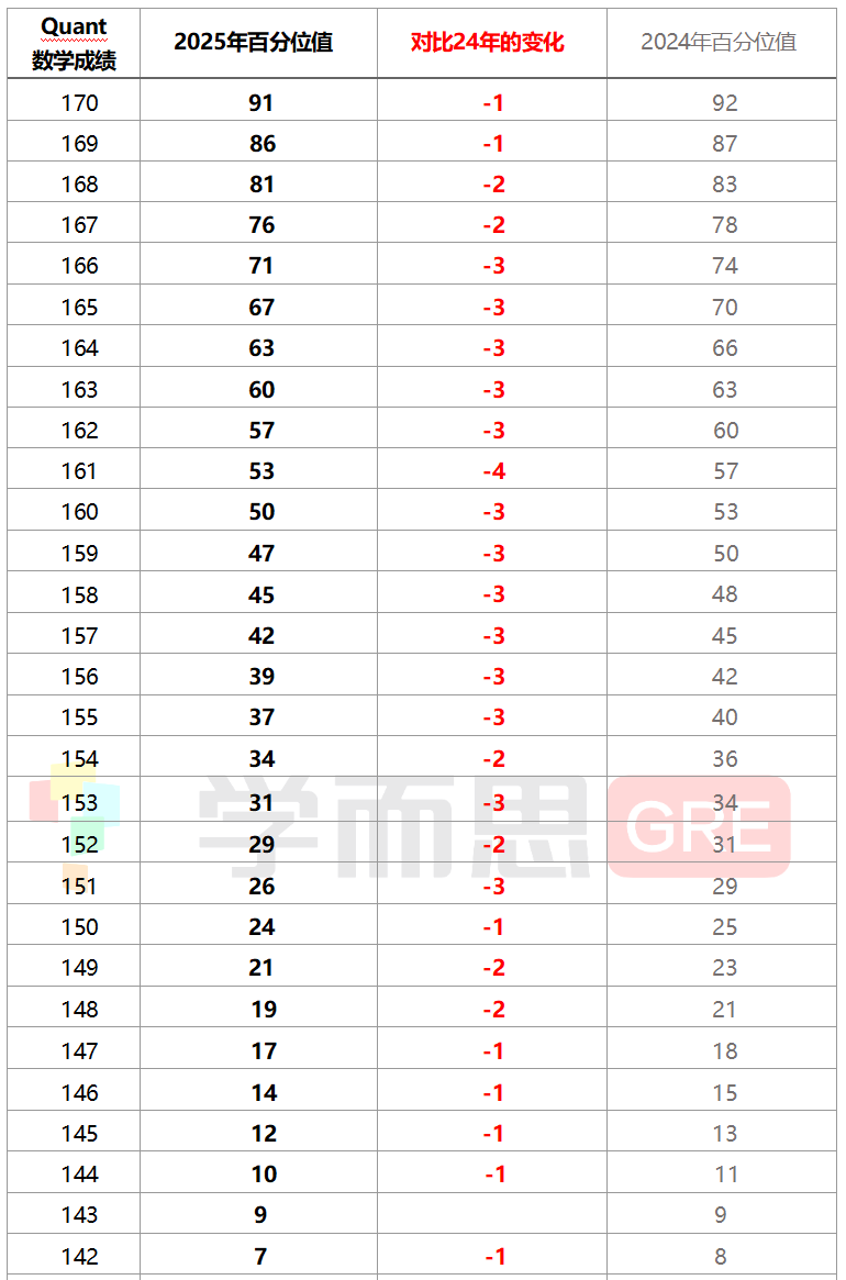 - > 刚刚!ETS大幅度更新GRE成绩百分位值,2025年GRE哪科考高分变难了?