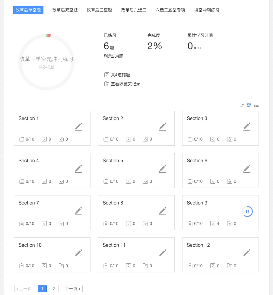 单空题,我们为课程学员汇总了34个Section,每个Section包含10道单空题,并且提供前24个Section供所有用户免费体验。