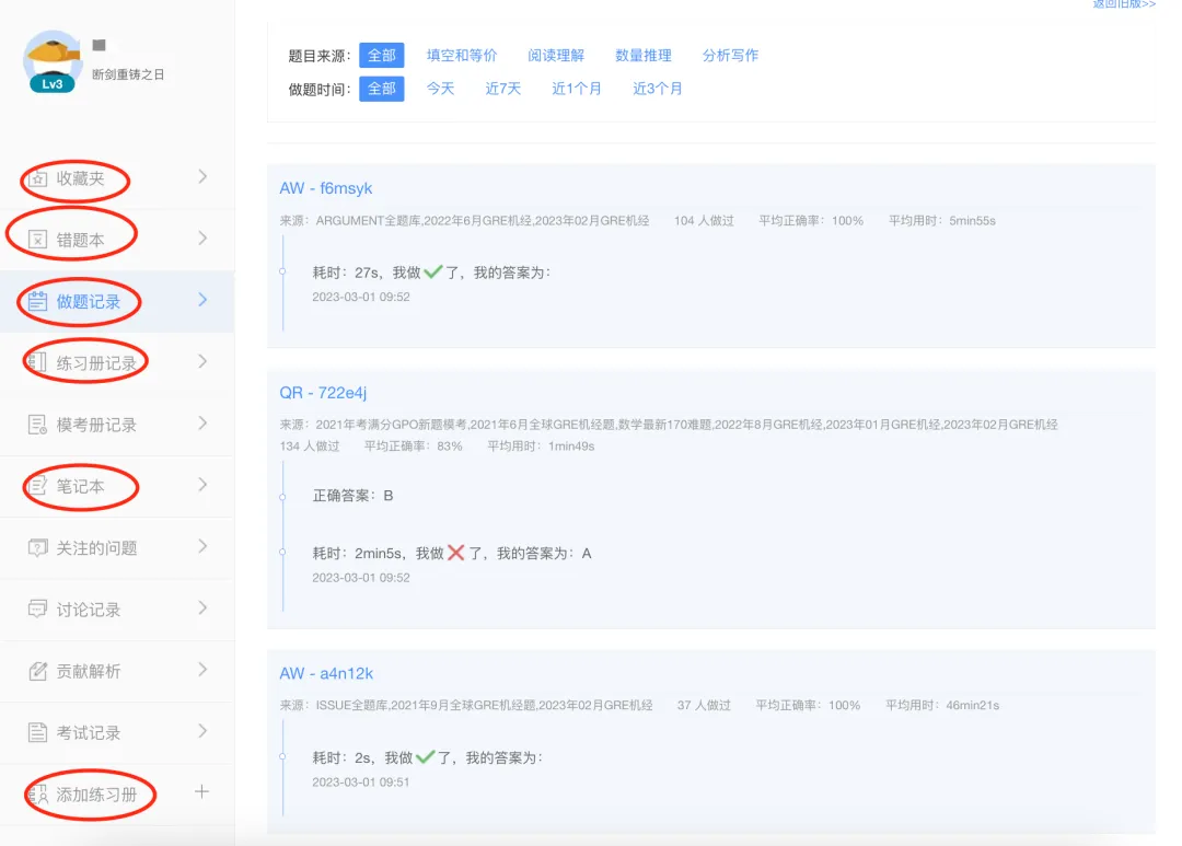 集中管理自己的做题记录(收藏夹、笔记、错题本等)。