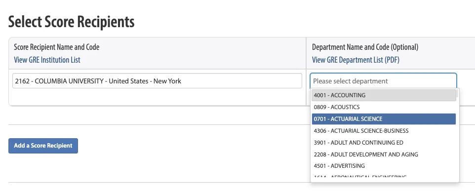 选好院校代码之后,就可以继续选择院系了,这时就不用提前记代码了,只需要提前准备好自己希望申请并且送分的院系名称,送分的时候下拉选择即可。