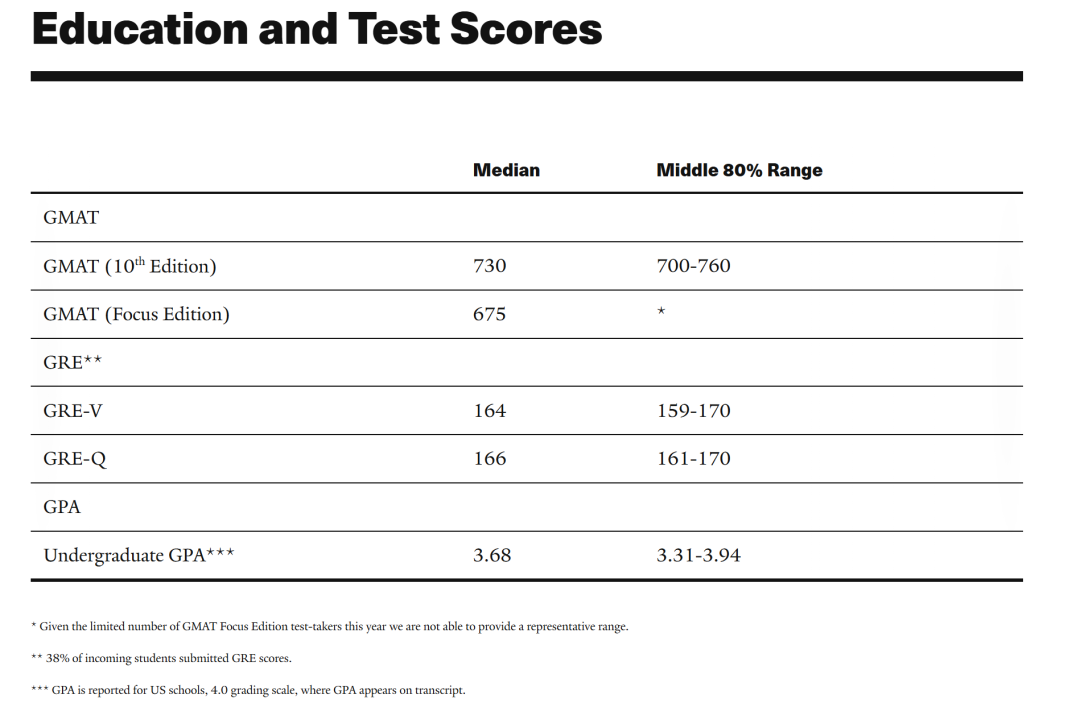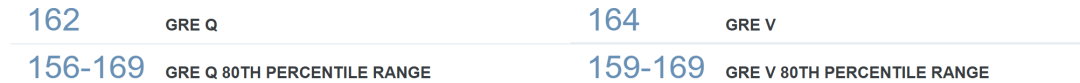 注意:middle 80%的意思是,排除录取分数最低的10%,以及录取分数最高的10%,只展示了剩下中间80%录取学生的GRE成绩区间。