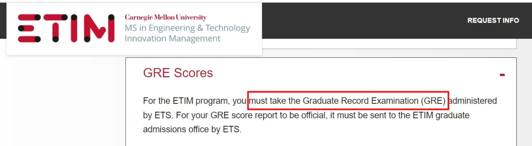 工程与技术创新管理硕士(ETIM)项目必须提交GRE成绩。