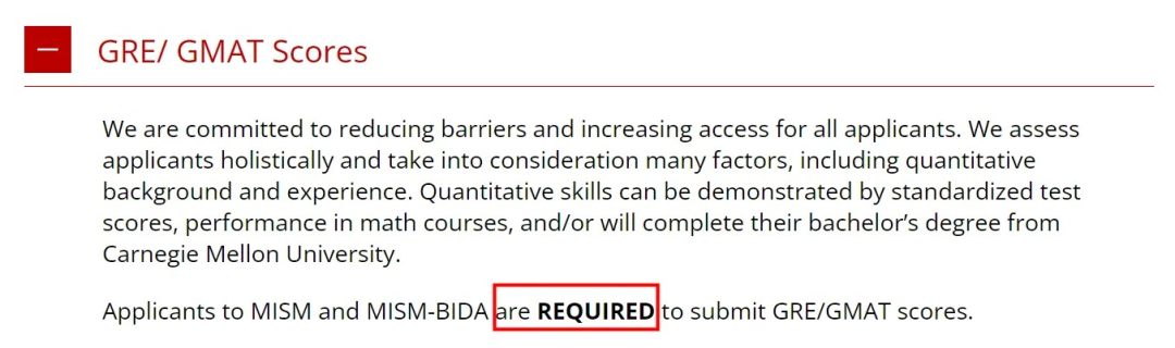 信息系统管理硕士 (MISM) 和信息系统管理硕士——商业智能与数据分析方向(MISM-BIDA)的学生必须提交GRE成绩。