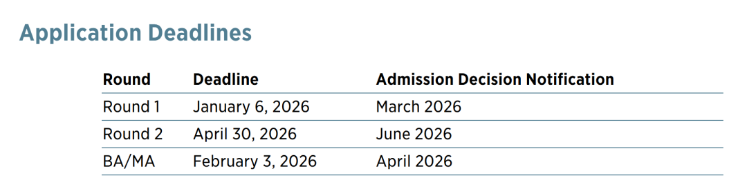 人文学科2026 年秋季的申请已于 2025 年 9 月开放。申请截止日期如下:
