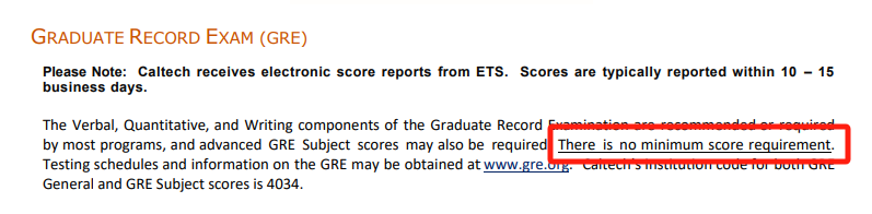Caltech官网没有公布历年录取学生的GRE成绩,并且在公告中注明了【 There is no minimum score requirement.】